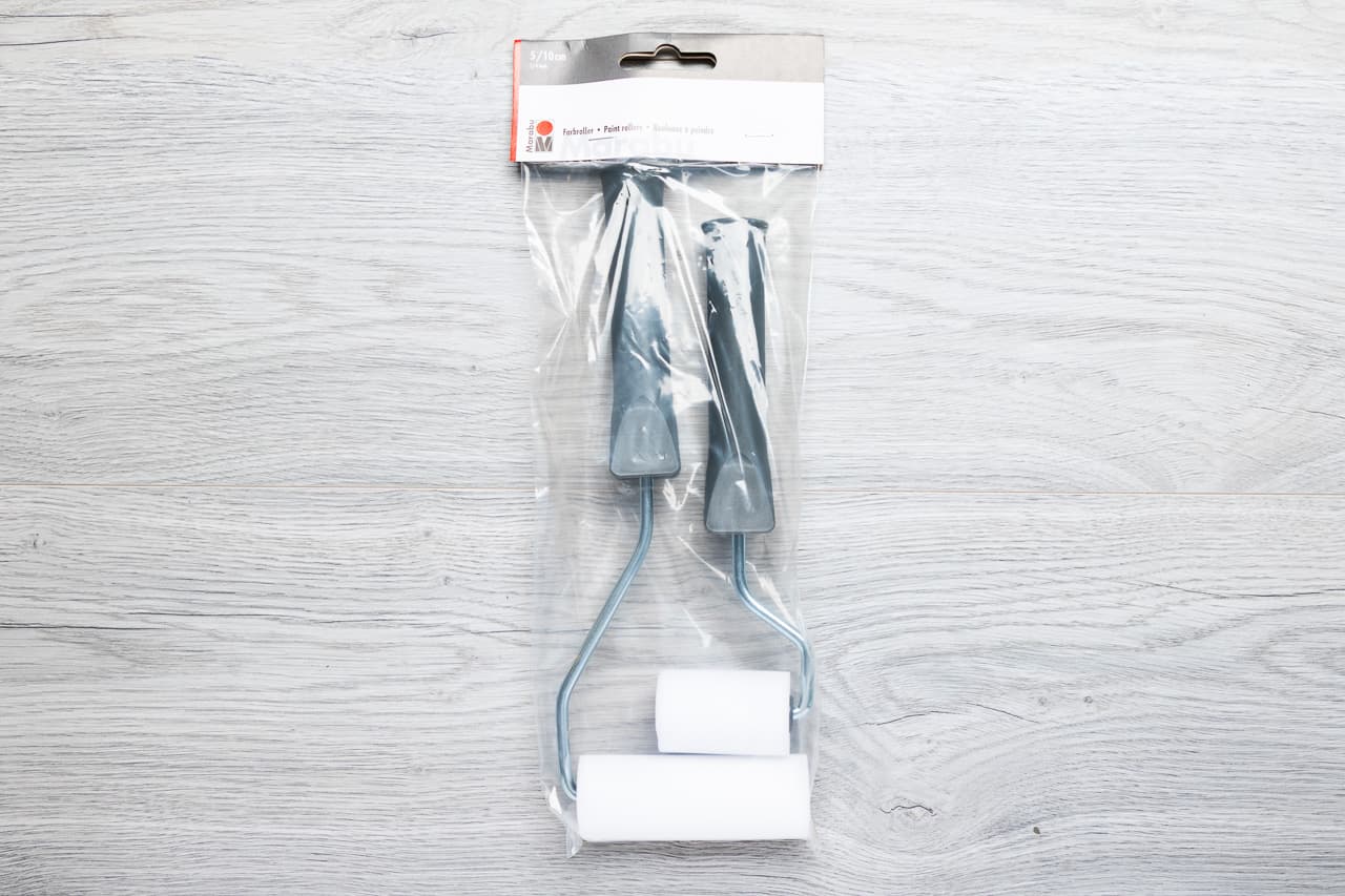 Skölj rollerna med vatten före första användning och låt dem torka ordentligt. Lägg sedan lite textilfärg på en blandningspalett och rolla skumrollen jämnt i färgen. På så sätt undviker du för mycket färg på tyget och får extra skarpa kanter. Efter användning kan skumrollerna tas av och rengöras enkelt med vatten, så att du kan använda dem länge.